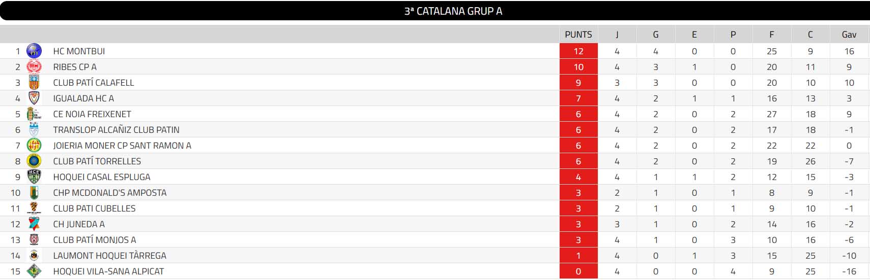 Podeu veure la taula classificatòria de 3a Catalana Masculina al grup A després de la jornada inaugural del campionat de lliga: