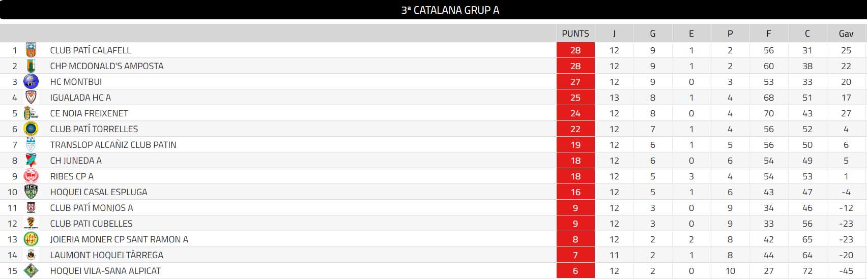 Podeu veure la taula classificatòria de la 3a Catalana Masculina (grup A) després de disputar-se la tretzena jornada de lliga a la imatge següent: