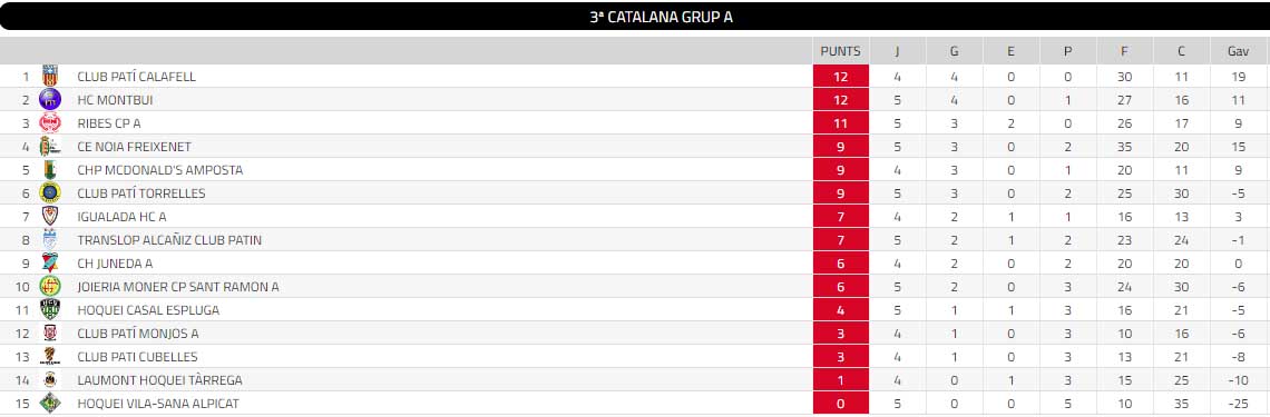 Després de recuperar el partit pendent provocat per la perturbació Alice, la taula de 3a Catalana Masculina al grup A està així: