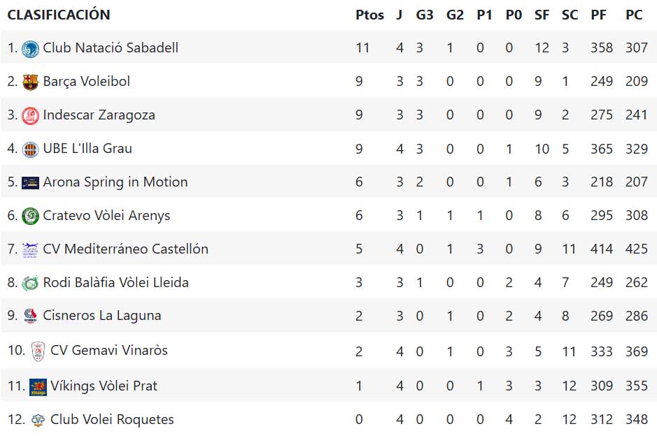 Podeu veure la classificació de la Superlliga 2 Masculina al seu grup B, després de la quarta jornada del campionat de lliga, la podeu veure a continuació:
