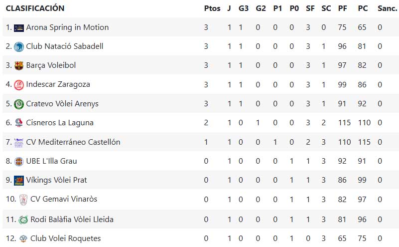 Podeu veure la classificació de la Superlliga 2 Masculina al seu grup B, després de la jornada inaugural de lliga, clicant sobre la següent imatge: