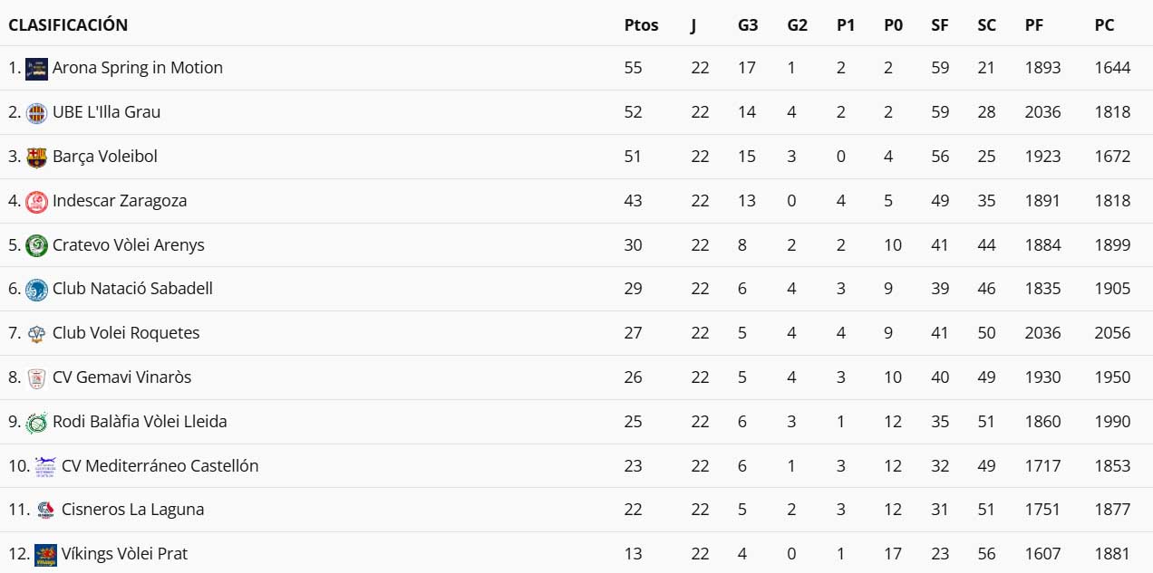 Podeu veure la classificació de la Superlliga 2 Masculina al seu grup B, després de disputar l’última jornada del campionat de lliga: