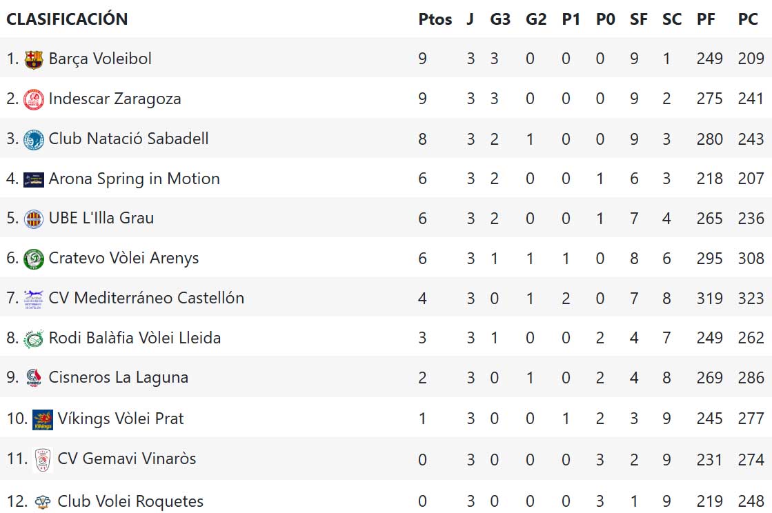 Podeu veure la classificació de la Superlliga 2 Masculina al seu grup B, després de la tercera jornada del campionat de lliga, la podeu veure a continuació: