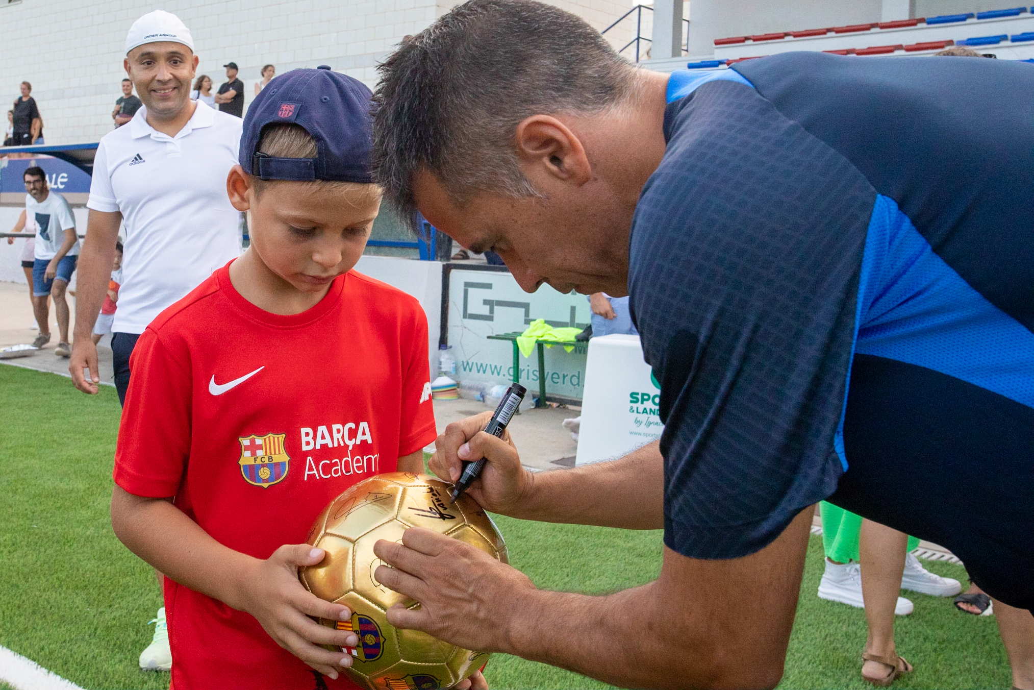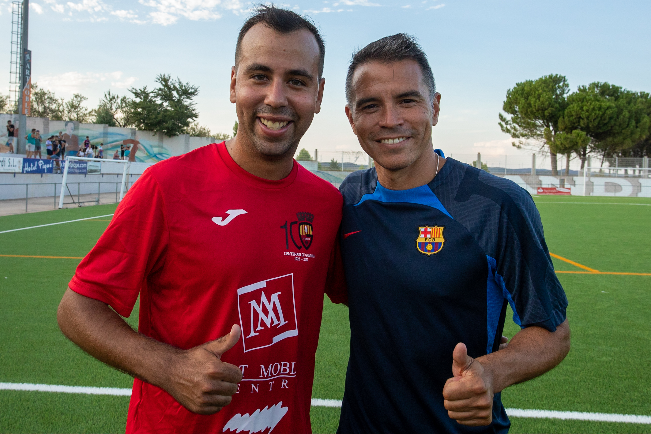 Per al tècnic del CF Gandesa, Ivan Romeu “era una prova que ens arribava massa aviat tenint en compte que només havíem pogut entrenar dos sessions per a preparar el partit contra el Barça i ara aturem dos setmanes els entrenaments, tenint en compte que la lliga no arranca fins a l’octubre i es feia massa llarg entrenar tot el mes d’agost i el setembre. Per tant fins al dia 19 no arrancarem” ens comentava l’entrenador gandesà que afegia que “del partit me’n vaig realment content pel que es va veure damunt del camp, perquè vam donar molt bona imatge, millor de la que m’esperava. Estava clar quin seria el guió del partit, ells tenint la major possessió de la pilota i nosaltres durant els primers vint-i-cinc minuts que el físic ens va respectar, vam poder-nos posicionar aguantant-los al centre del terreny de joc, sense trobar la profunditat necessària per a portar-nos perill. El fet de que ens tanquessin a l’àrea, tenint-nos que defensar molt enrera, no va passar i al contrari vam disposar d’una ocasió, una rematada de fora de Dilla i tres o quatre arribades per la banda d’un Oriol molt actiu, que ens haguèssin pogut avançar al marcador” ens apuntava Romeu. “Vam saber llegir molt bé el fet de tapar els carrils interiors, però a mesura que avançava el partit els darrers vint minuts de la primera meitat ells ens van anar guanyant terreny i generant arribades i una ocasió molt clara ben resolta per Iniesta” ens deia el tècnic terraltí que matisava que “al segon temps, amb els nombrosos canvis introduïts al descans, vam perdre aquesta intensitat defensiva i en deu minuts, fruit de dues arribades ens costaven dos gols“. “Malgrat això, nosaltres teníem més pilota que a la primera meitat i ens trobàvem més còmodes amb l’esfèric. Fruit d’aquesta dinàmica vam generar l’acció del gol en una pilota filtrada per Gumiel cap a Dilla en la que definia a la perfecció en un gol de molt bella factura. Amb el gol i que el partit estava molt més obert que als primers quaranta-cinc minuts, van generar-nos vàries situacions de gol que no culminaven i a la contra vam tenir l’empat diverses vegades. Al final, en una pèrdua al darrere, quan ja passava un minut del temps reglamentari, vam encaixar el tercer i la sentència. En resum, molt bon partit per les circumstàncies en les que ens presentàvem i a pensar en el que vindrà a partir d’aquí a dos setmanes” sentenciava Ivan Romeu.