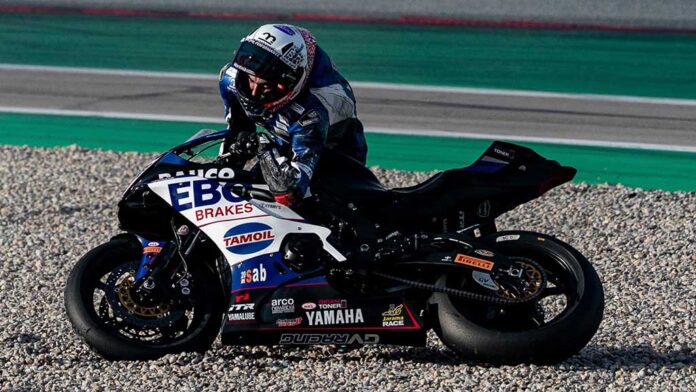 La reacció del pilot de GV Tamoil Racing va ser anar a buscar la moto que estava a la grava i seguir la cursa des de l’última posició. Tot i saber que era molt complicat, el casenc va seguir encara 8 voltes abans d’entrar al box, fins que la moto ja no responia com ho hauria de fer a causa de la caiguda.
