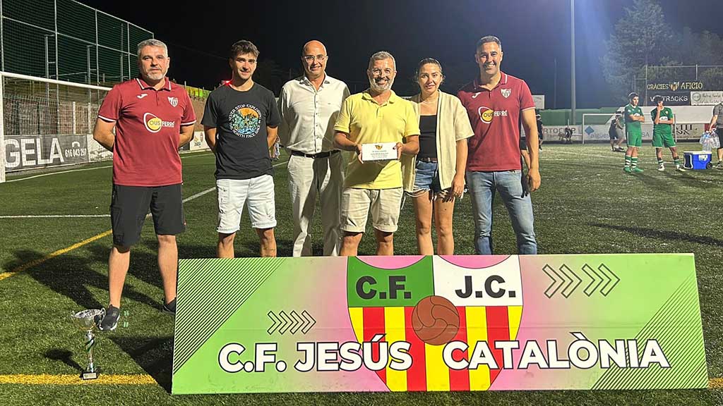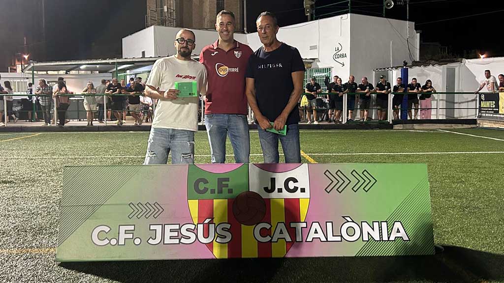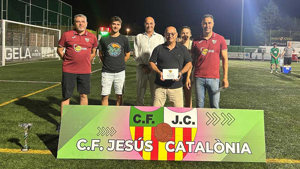 Noèlia Tomàs, filla de Juan Tomàs Ballano, va fer el lliurament al capità verd-i-blanc Sergi Escoda del trofeu que acreditava al Jesús Catalònia com a subcampió d’esta vuitena edició i el seu germà Jordi Tomàs, va lliurar-li al capità del CF Tortosa Ebre, Marc Ayuso, el distintiu que els otorgava el fet de convertir-se en el màxim conjunt amb més edicions al memorial que organitza el CF Jesús Catalònia.