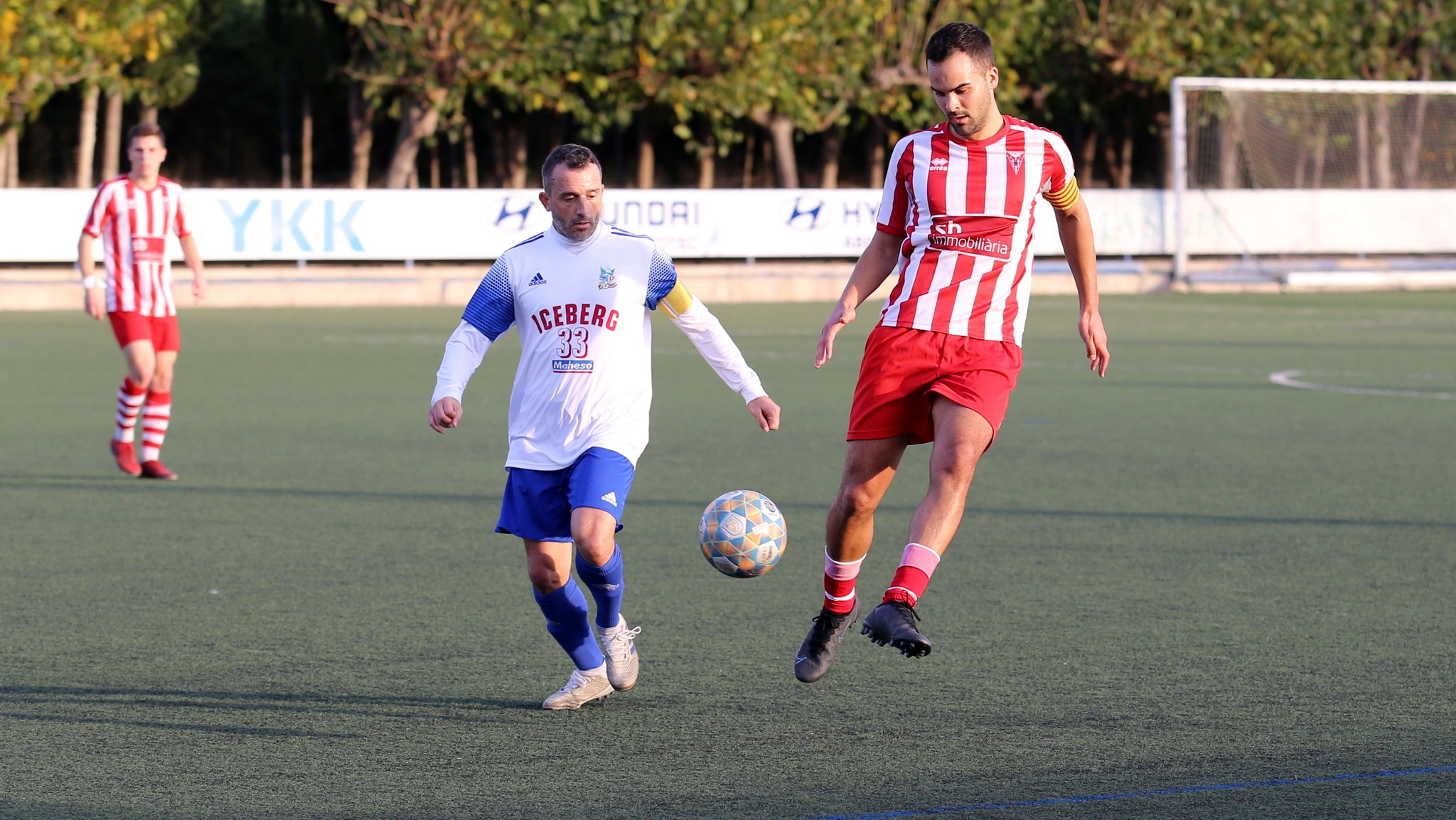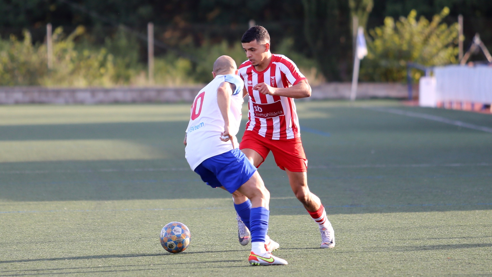El partit tot i presentar-se amb baixes significatives en l’onze titular, amb les tres absències de Dome i Rafa Llop, per acumulació de grogues i Genís Arrastraria, al qui el comitè de competició li ha imposat dos partits de suspensió després de la roja directa que va veure la setmana passada davant l’Ulldecona, que s’agreujaven per la baixa per lesió d’Ion Perelló. Tot i aquestes adversitats, els de Fabregat, que recuperaven per aquest partit a Marc Bernardo i Ibra, recuperats de les seues lesions i amb el debut de Moha aquesta mateixa setmana, van ficar fil a l’agulla en una canonada de Joan Gisbert abans dels deu minuts, incorporat a l’atac des del lateral, amb una rematada espectacular des de fora l’àrea que obria la llauna per als roig-i-blancs. A partir d’aquí, els visitants van controlar el partit i els locals no van poder intimidar, fins que Kebba (que porta 4 jornades consecutives marcant) afusellava per segona vegada la xarxa de la porteria local recollint la passada de la mort de Peque, amb que tancaven la primera meitat.