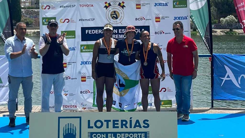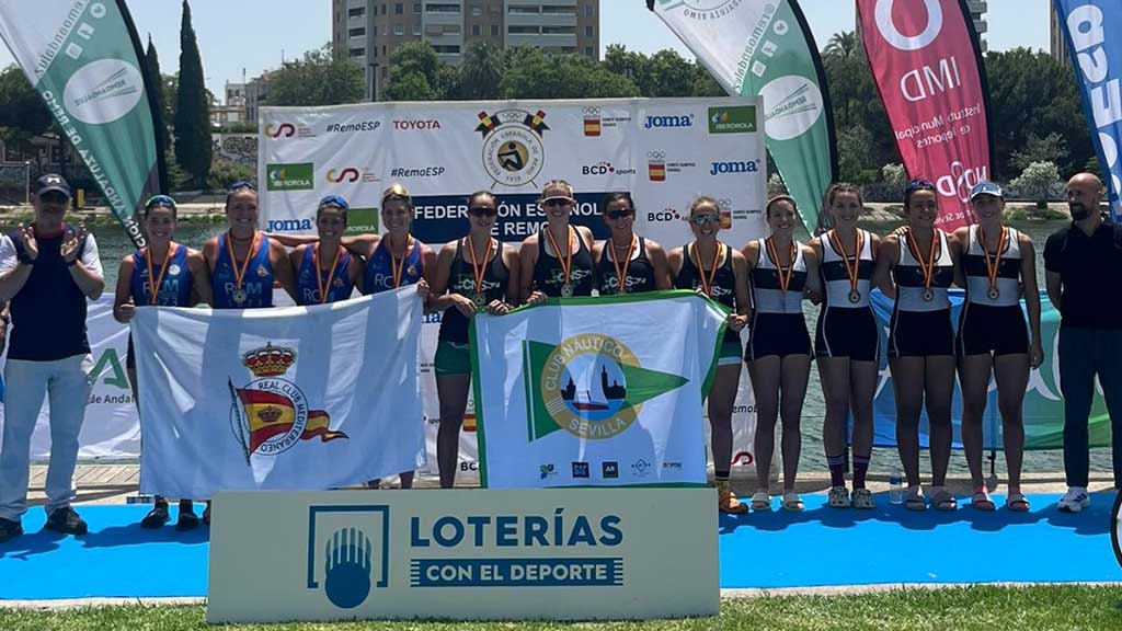 Els representants ebrencs van pujar en onze ocasions al podi, del Campionat d’Espanya de rem olímpic i paralímpic, disputat al Centre Especialitzat d’Alt Rendiment La Cartuja de Sevilla a la dàrsena del Guadalquivir. La cita nacional, adreçada a les categories absoluta, sub23, juvenil i cadet, va comptar amb la participació d’un miler de remers i 476 tripulacions procedents de 60 clubs de nou comunitats, entre els quals els amfitrions de la Federació Andalusa van aconseguir el sisè títol consecutiu a la Copa del Rei per autonomies. A més, va dominar el medaller amb Club Nàutic Sevilla i Real Circulo de Labradores, que es van repartit 24 dels 44 ors possibles.