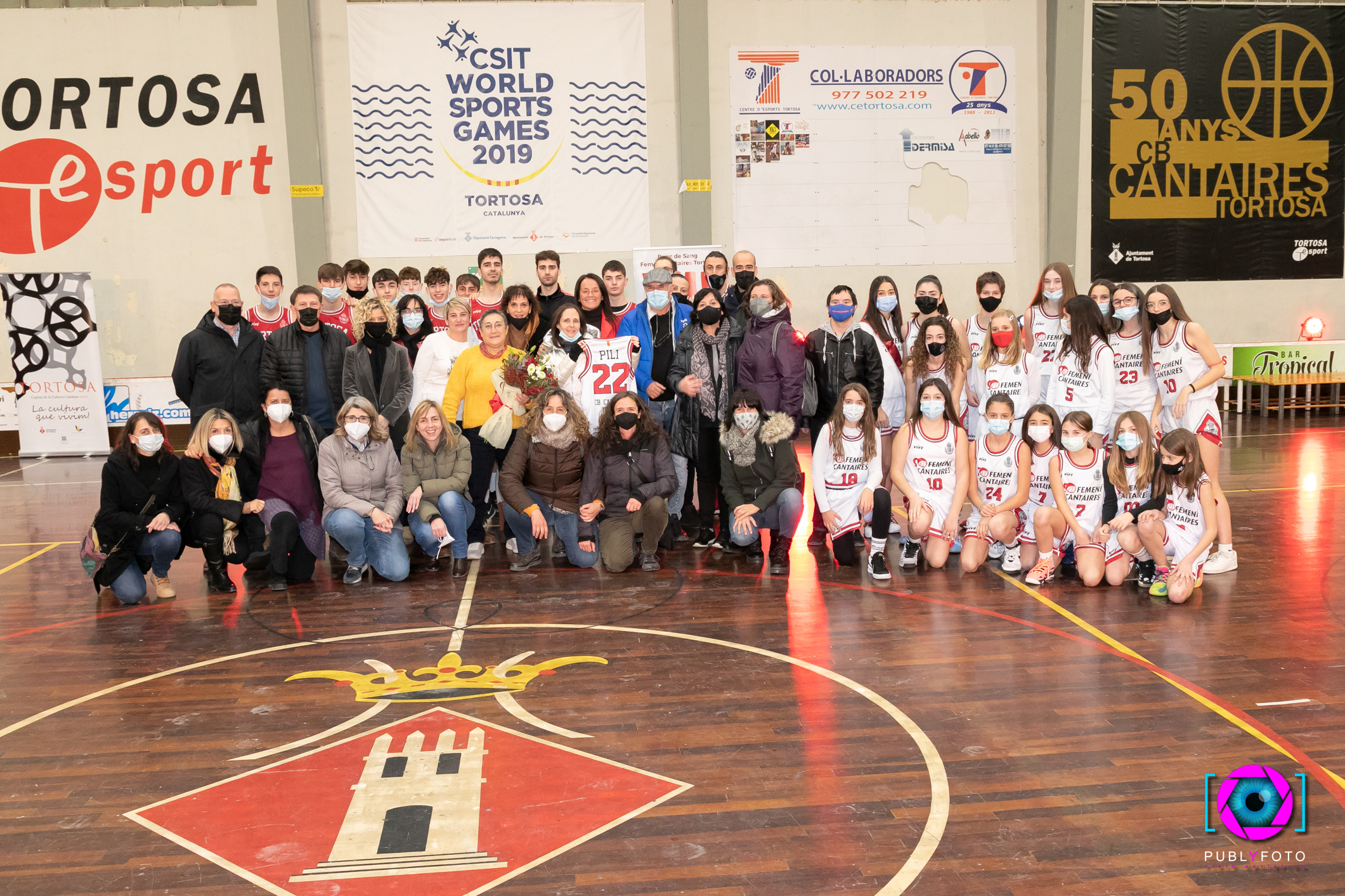 Abans de la disputa del partit entre els equips sénior masculí del Davima Cantaires Bàsquet Tortosa i el Reus Deportiu, el club tortosí va efectuar la presentació de les plantilles dels seus equips, que enguany estan apadrinats per Pili Zaragoza, entrenadora vinculada durant molts anys al club.