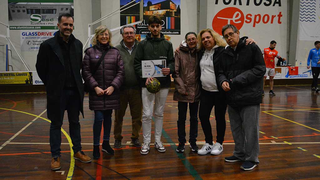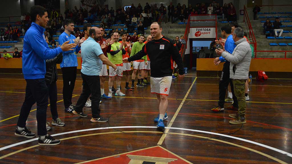 Quan els jugadors juvenils van acabar el seu partit es van sumar als sèniors i van fer un passadís a la sortida de vestidors, amb els moments més esperats i emotius del dia. Mariona Obiol, filla de Joan Obiol Valldepérez, va pronunciar unes paraules en record de la figura del seu pare i en agraïment a tots els presents envoltada de la seva família i també la gran família que té en el món de l’handbol tortosí.
