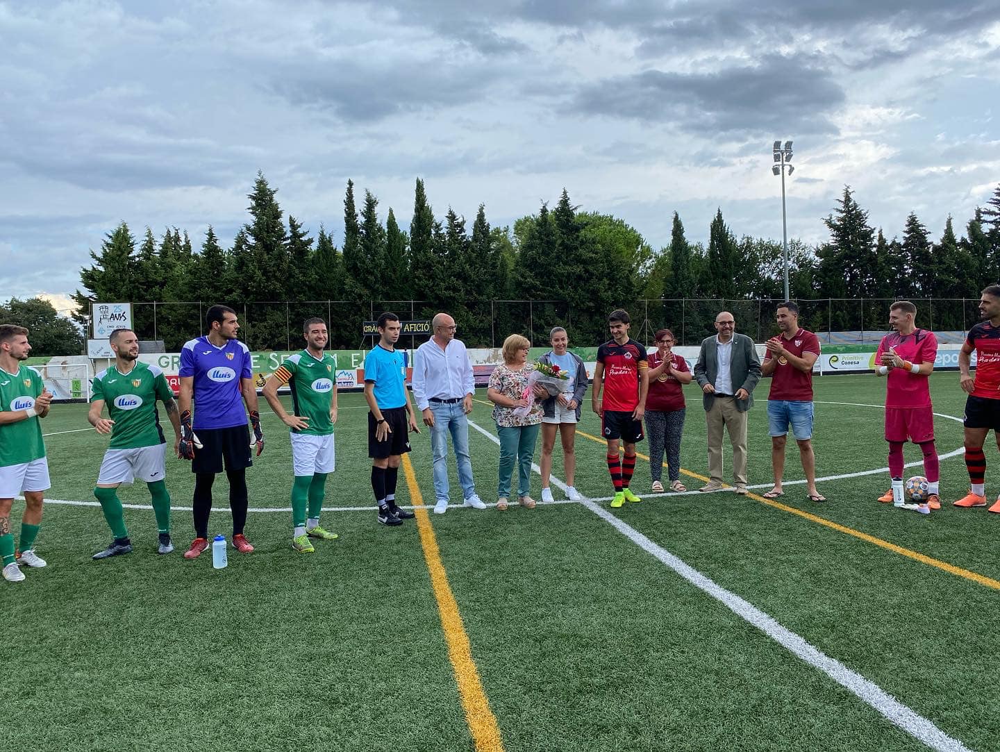 En els prolegòmens del partit, que va estar a punt de ser suspès per la pluja que va caure-hi i que va obligar a endarrerir el començament mitja hora més tard del previst, es van viure uns moments molt especials al recordat jugador del CF Jesús Catalònia i el CD Tortosa entre d’altres, amb el servei de centre de la filla de Tomàs Ballano, Noèlia, acompanyada de la seva mare, Dolors Campos, i el seu germà Jordi Tomàs que enguany continua defensant la camiseta del CF l’Ampolla. Van estar acompanyats per l’alcalde Víctor Ferrando, el regidor d’esports de l’EMD de Jesús, Josep Pere Puig i el president del CF Jesús Catalònia, Cristian Roglan.
