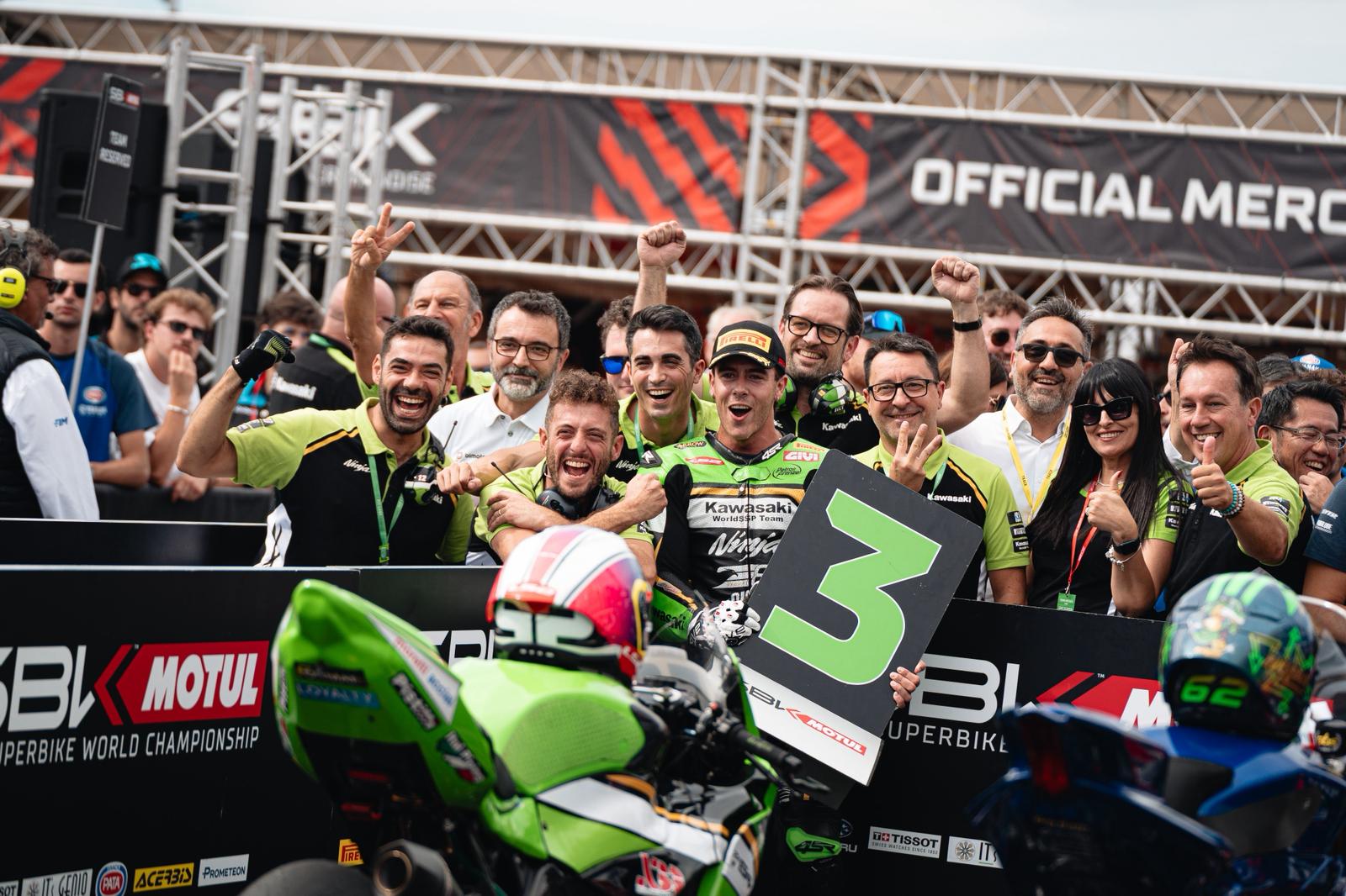 Jeremy Alcoba va pujar per primera vegada aquesta temporada al podi en una prova del Campionat del Món FIM Supersport, pilotant una Kawasaki WorldSSP Team, única de la competició. En l’onzena i penúltima ronda de la temporada del seu debut en curses derivades de la producció, i alguns anys sense rodar pel circuit d’Estoril, el pilot jesusenc va protagonitzar una espectacular remuntada, començant la segona carrera en la vint-i-cinquena posició, des de la fila nou de la graella de sortida.